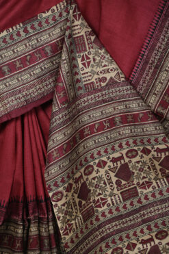 CRIMSON TUSSAR SAREE WITH PRINTED SKIRT BORDER AND BLOUSE PIECE