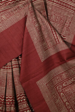 MAROON TUSSAR SAREE WITH GEOMETRICAL PRINT AND PLAIN BORDER WITH BLOUSE PIECE