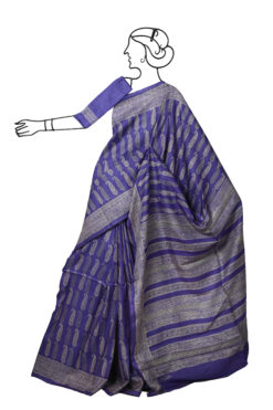 PURPLE TUSSAR SAREE WITH ALL OVER PAISLEY PRINT WITH BLOUSE PIECE