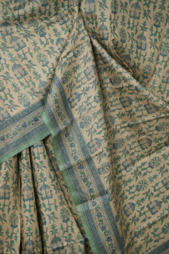 NATURAL BASE TUSSAR SAREE WITH ALL OVER FLORAL PRINT WITH BLOUSE PIECE