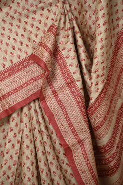 NATURAL BASE TUSSAR SAREE WITH ALL OVER FLORAL PRINT AND WITHOUT BLOUSE PIECE