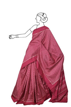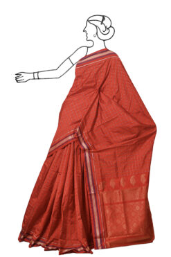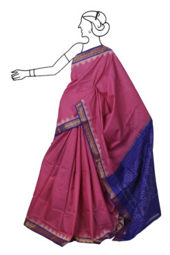 Kanishka’s weaves telias in Orissa as well as Andhra Pradesh, that use oil (tel) as a resist to the yarn dyeing process that defines this technique. Motifs are geometric and intricate in nature and our weavers adhere to a very ancient measuring technique in counting the weft to produce these sarees.