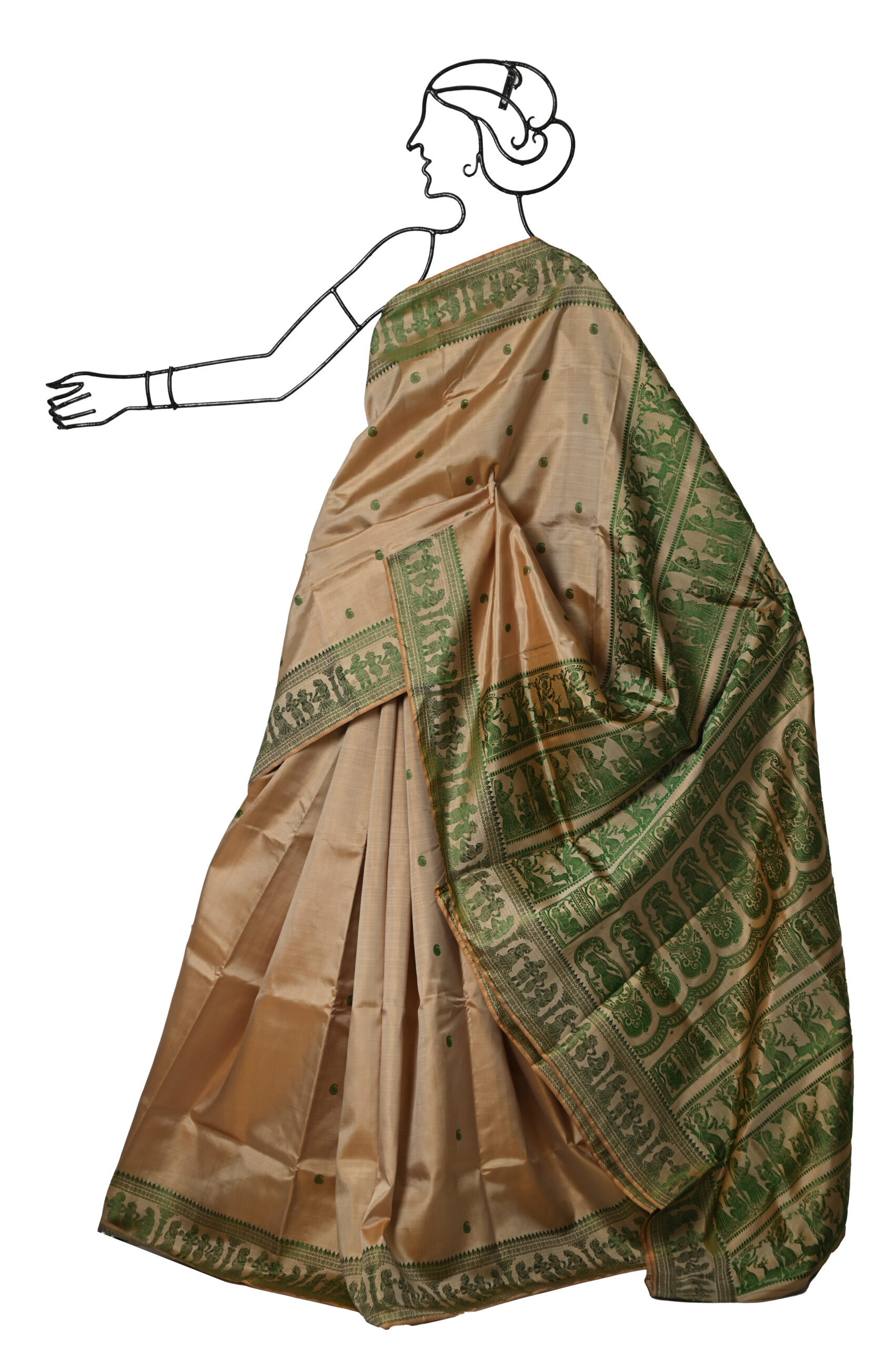BEIGE BALUCHARI SAREE WITH THREAD WORK AND BLOUSE PIECE