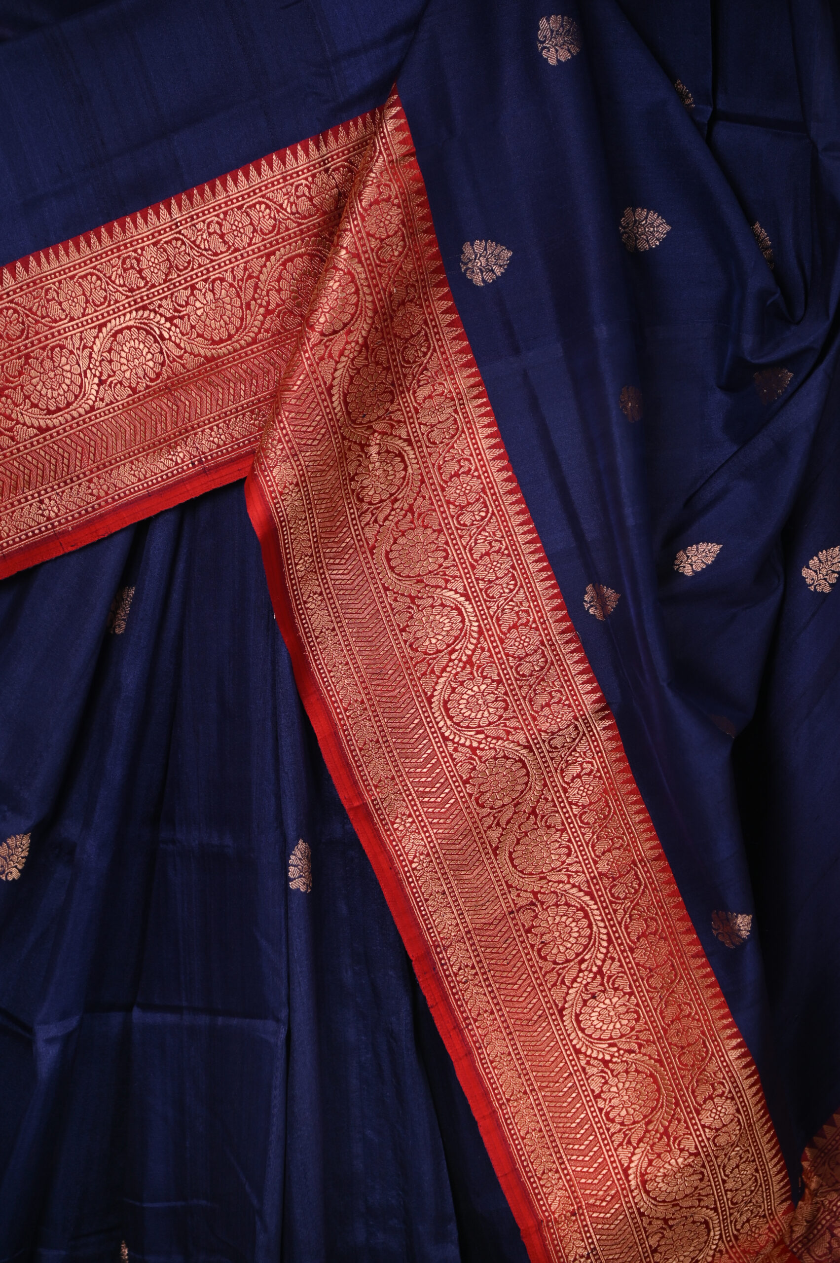 BLUE TUSSAR BENARASI SAREE WITH ZARI BUTA AND RED PALLU WITH BLOUSE PIECE