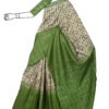 GREEN CREPE SAREE WITH ALL OVER ANIMAL BLOCK PRINT AND BLOUSE PIECE
