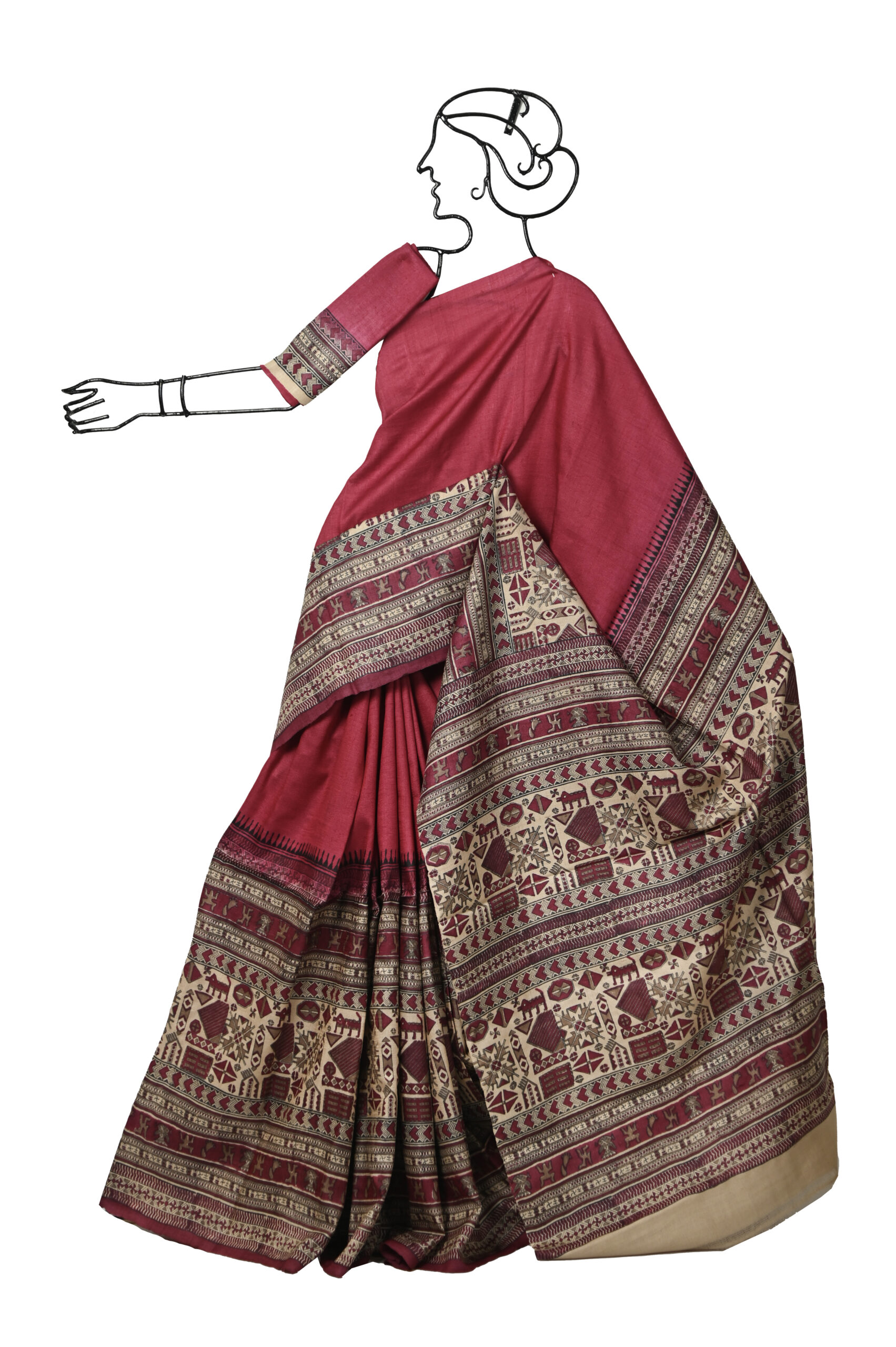 Be the first to review “CRIMSON TUSSAR SAREE WITH PRINTED SKIRT BORDER AND BLOUSE PIECE” Cancel reply
