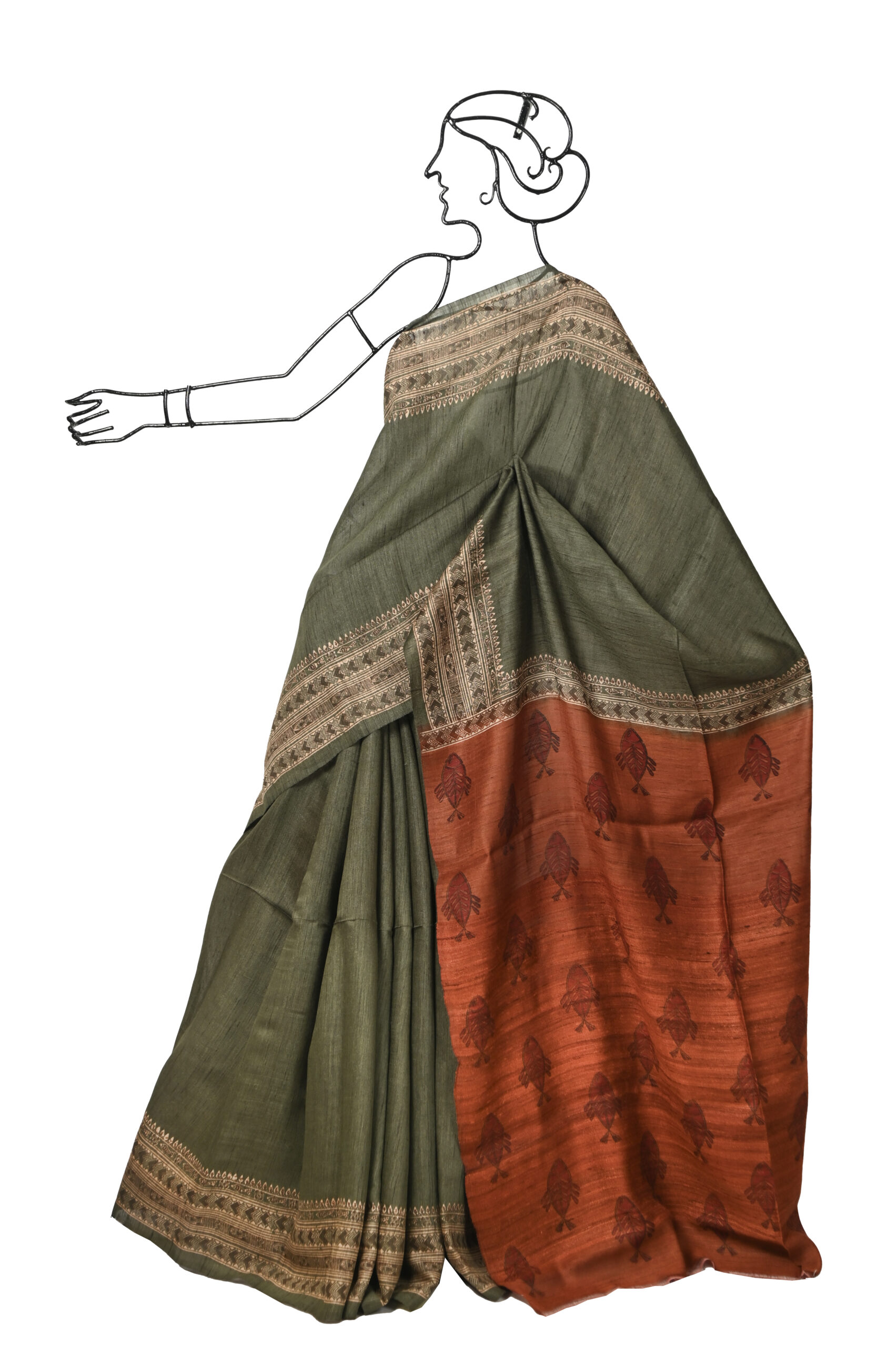 Be the first to review “GREEN BHAGALPURI TUSSAR SAREE WITH PRINTED BORDER AND PALLU WITH BLOUSE PIECE” Cancel reply