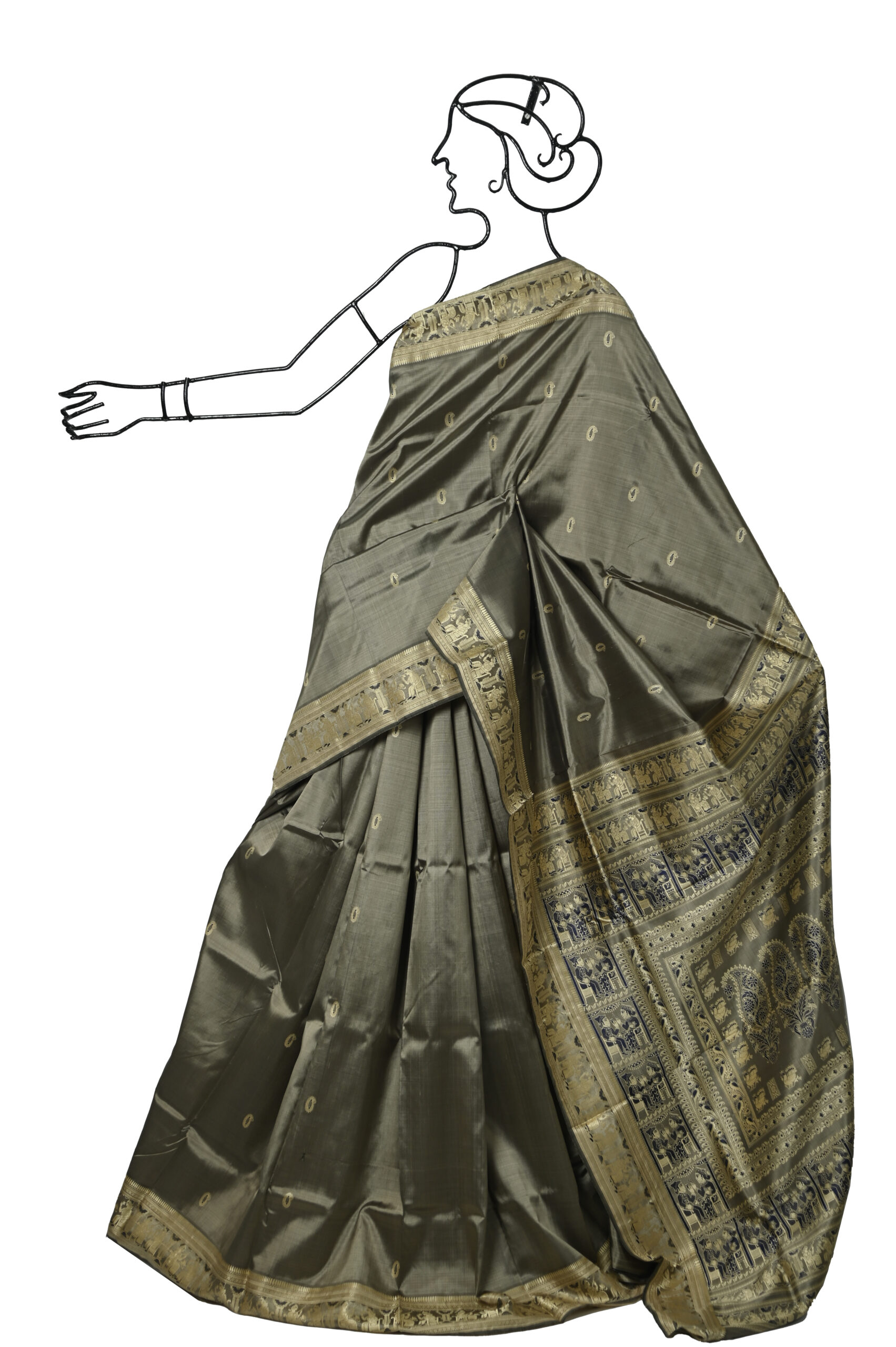 GREY KANJEEVARAM SAREE WITH THREAD WORK AND BLOUSE PIECE