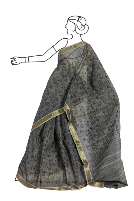 Be the first to review “GREY ZARI BORDER TANT SAREE WITH ALL OVER BLACK BLOCK PRINT” Cancel reply