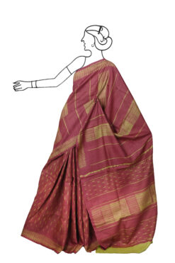 MAROON AND GREEN TUSSAR SHIBORI SAREE WITH BLOUSE PIECE