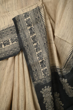 NATURAL BASE BHAGALPURI TUSSAR SAREE WITH GANGA YAMUNA BORDER WITH BLOUSE PIECE