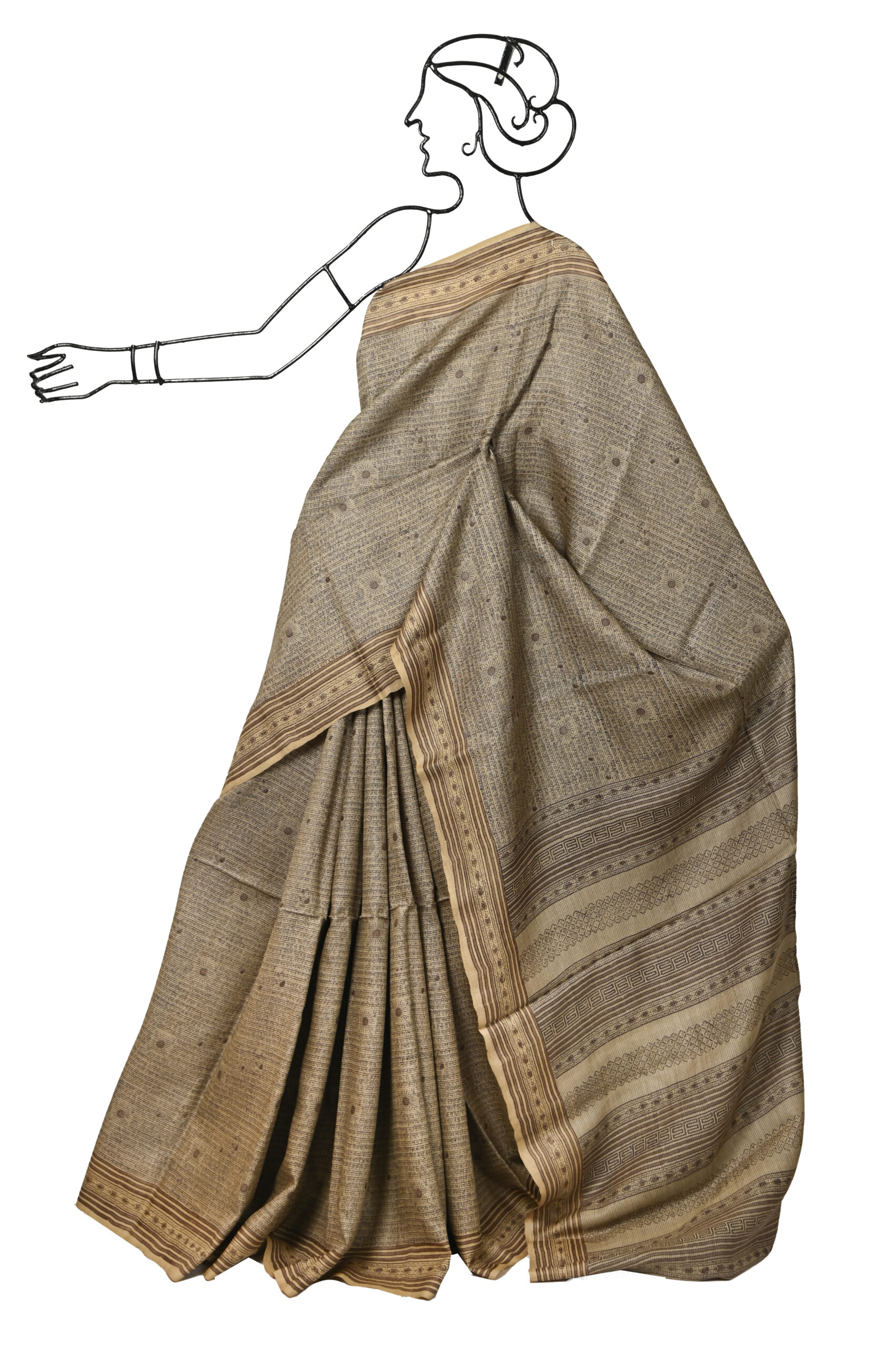 NATURAL BASE BHAGALPURI TUSSAR SAREE WITH SCRIPT PRINT WITH BLOUSE PIECE
