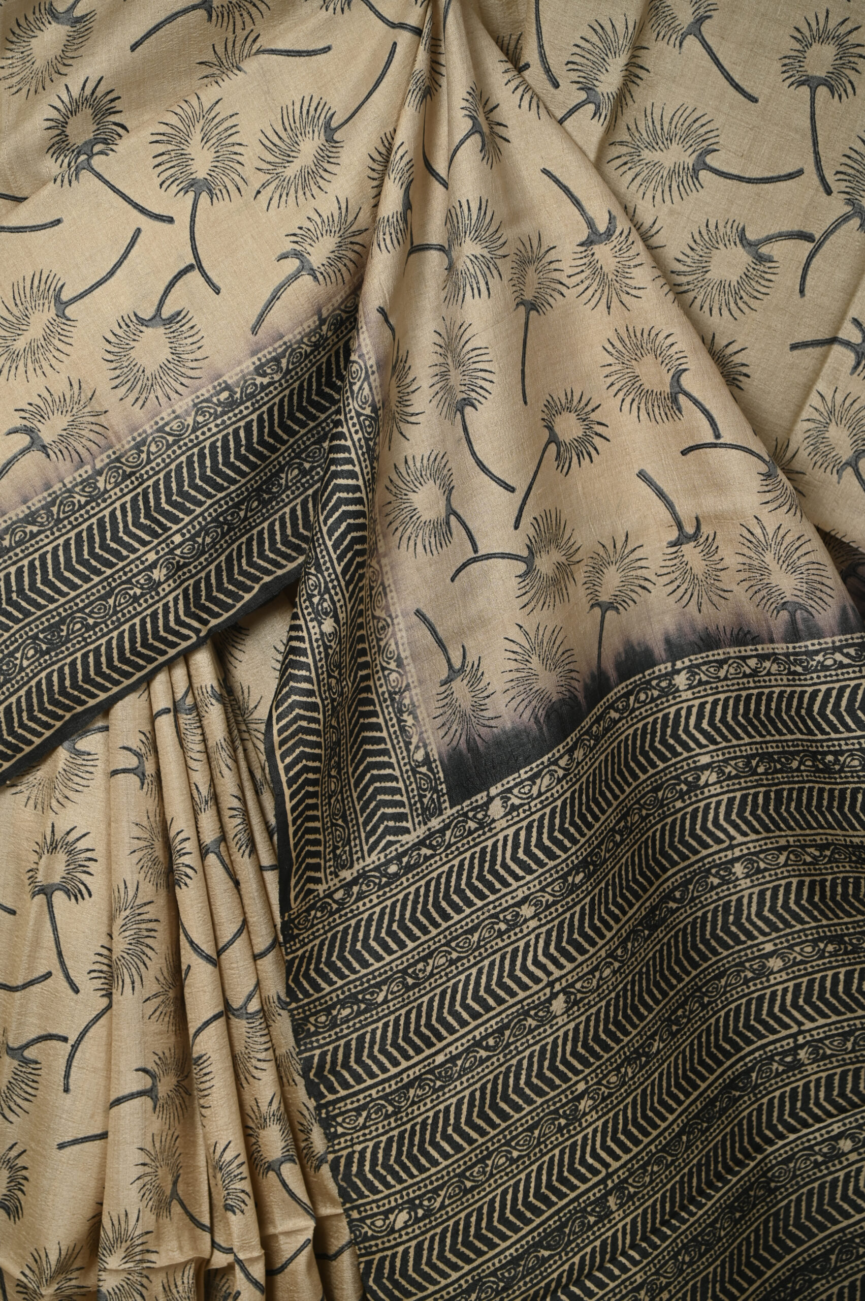 NATURAL BASE TUSSAR SAREE WITH ALL OVER FLORAL PRINT WITH BLOUSE PIECE