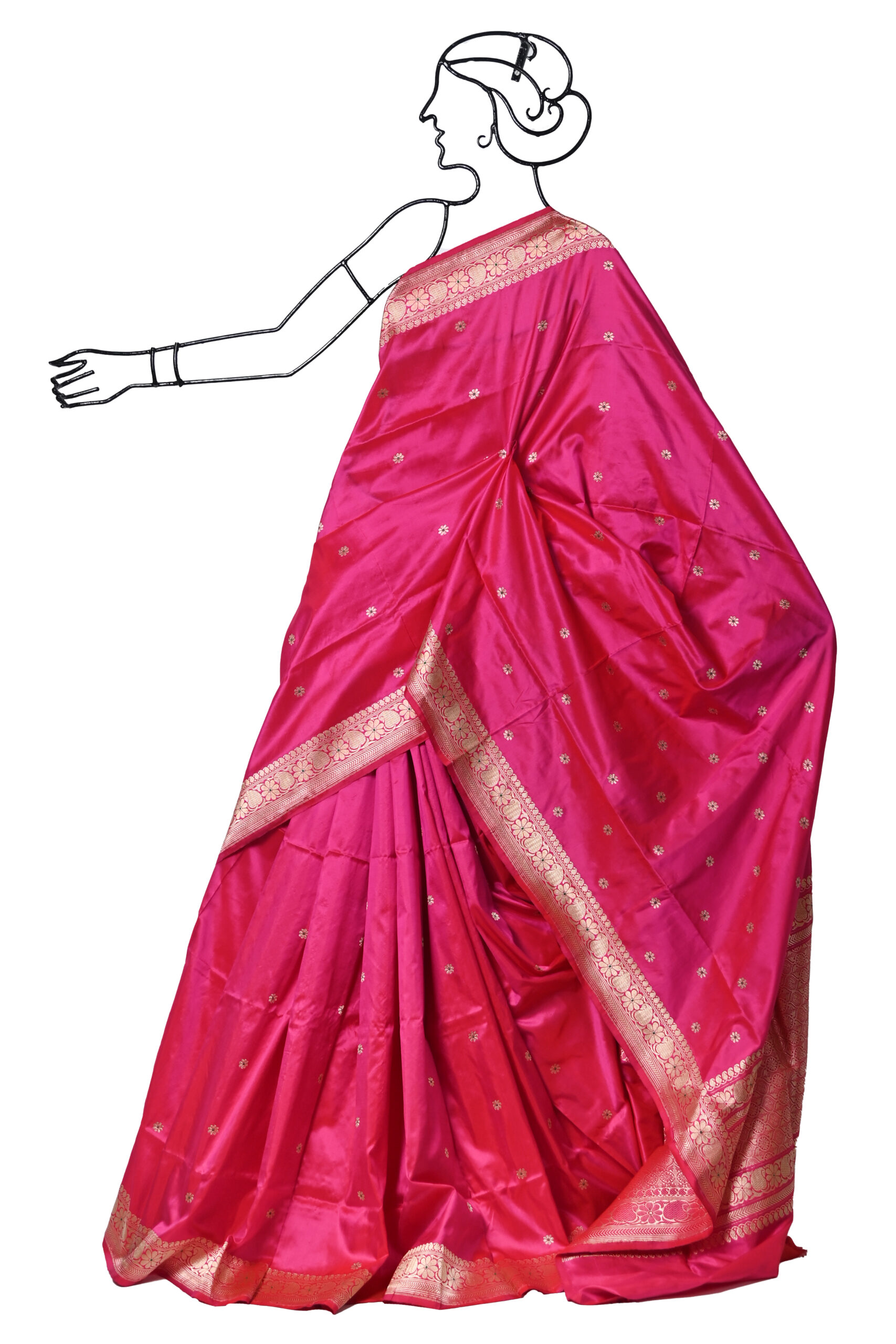 PINK KATAN BENARASI SAREE WITH ALL OVER ZARI BUTI AND BLOUSE PIECE