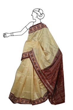 RED ORISSA SILK SAREE WITH BROWN IKKAT WEAVE BORDER AND PALLU AND BLOUSE PIECE