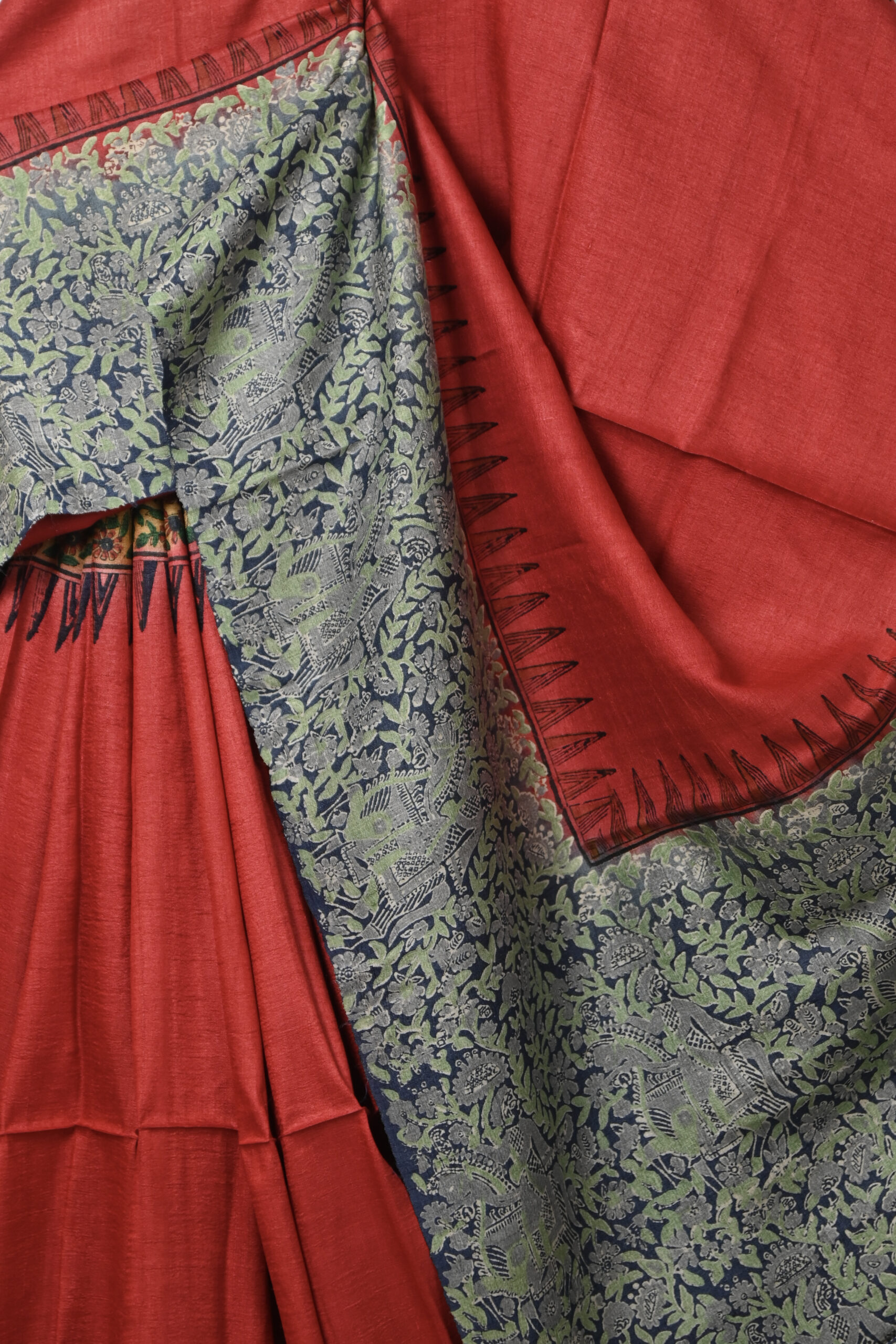 Be the first to review “RED TUSSAR SAREE WITH BLUE AND YELLOW PRINTED GANGA YAMUNA BORDER WITH BLOUSE PIECE” Cancel reply