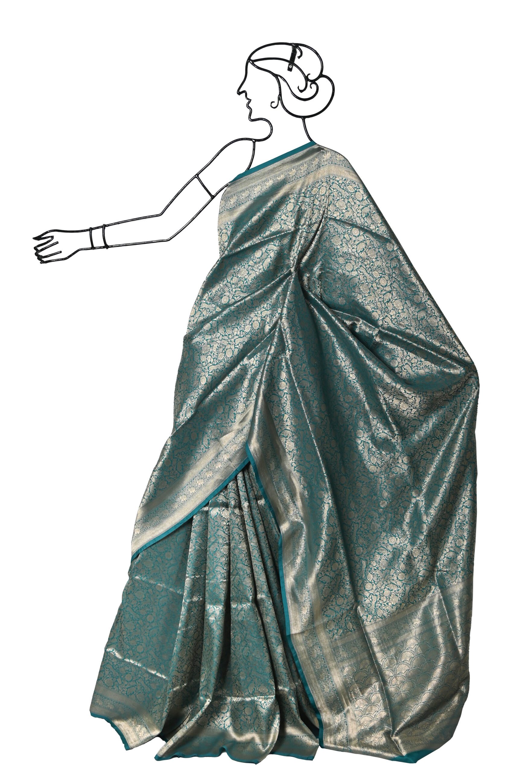 TURQUOISE KATAN BENARASI SAREE WITH ALL OVER SIKARGA WEAVE AND BLOUSE PIECE