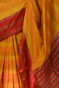 YELLOW TUSSAR BENARASI SAREE WITH MAROON BORDER AND PALLU WITH BLOUSE PIECE