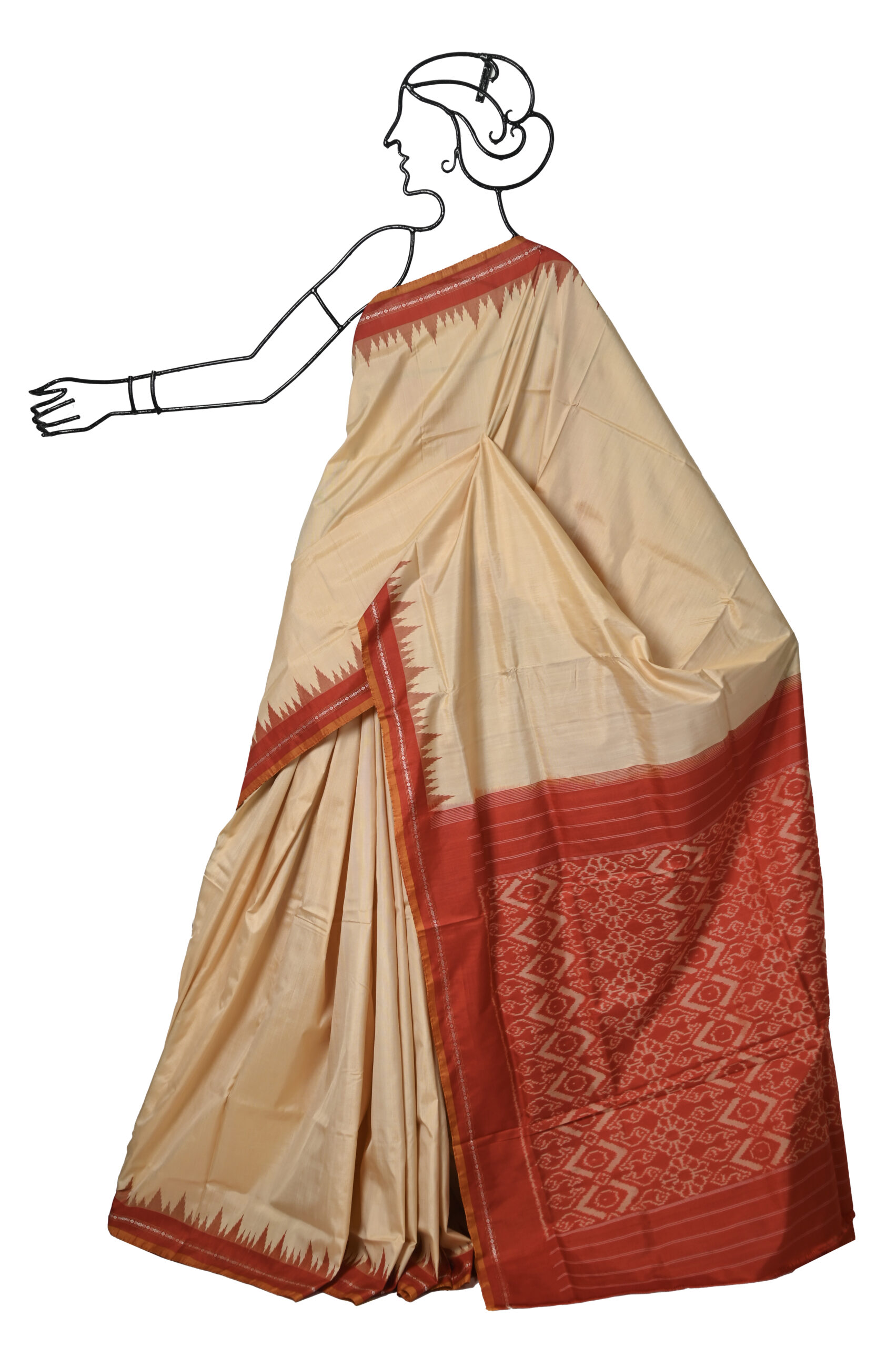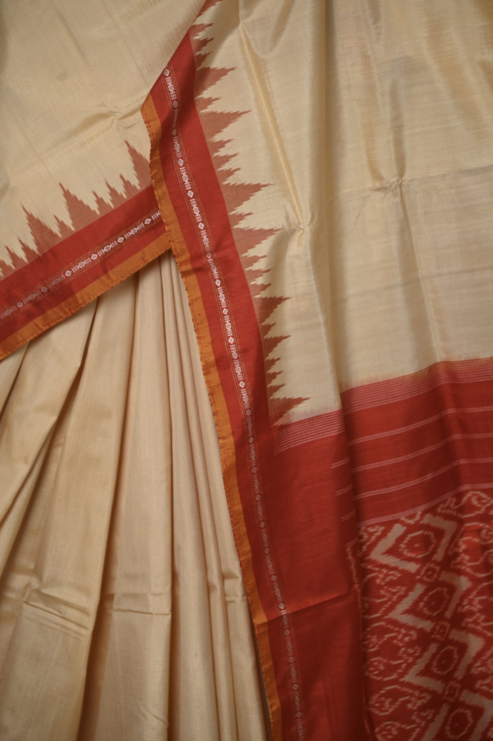 BEIGE TELIA SILK SAREE WITH RED TEMPLE BORDER AND BLOUSE PIECE