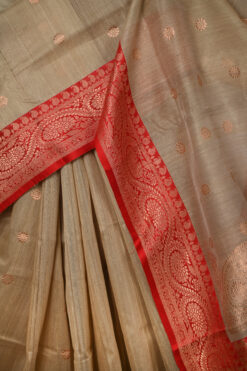 BEIGE TUSSAR BENARASI SAREE WITH ZARI BUTA AND RED PALLU WITH BLOUSE PIECE