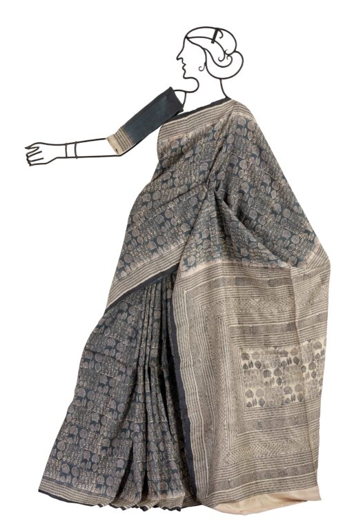 Be the first to review “BLACK TUSSAR SILK SAREE WITH WHITE LEAF BLOCK PRINT AND BLOUSE PIECE” Cancel reply