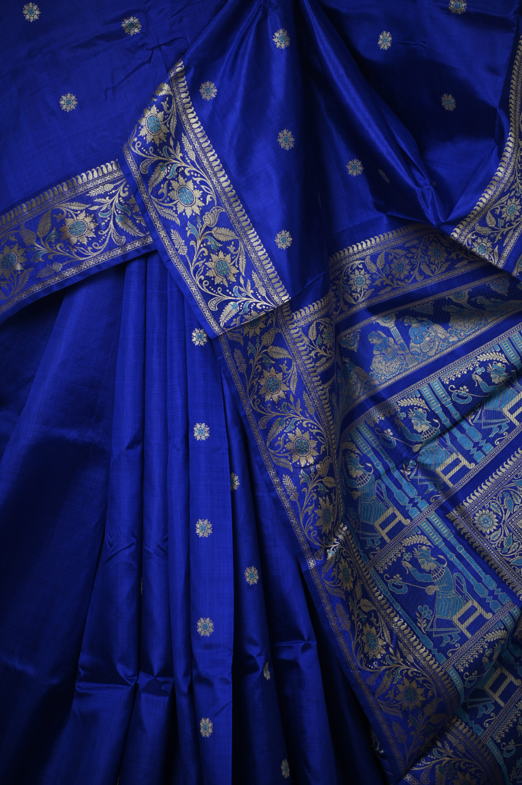 BLUE BALUCHARI SAREE WITH THREAD WORK AND BLOUSE PIECE
