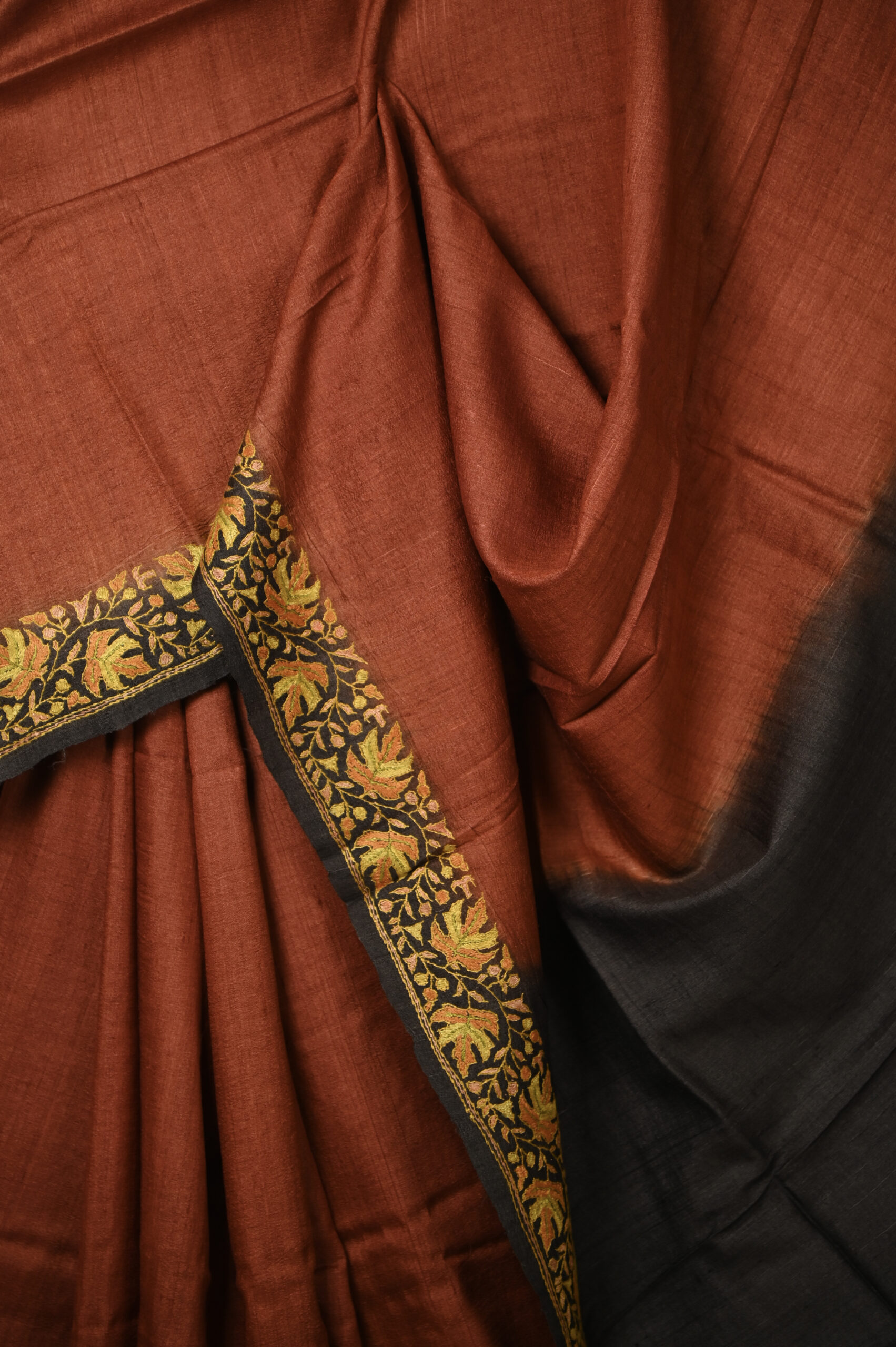 BROWN TUSSAR SAREE WITH KASHMIRI EMBROIDERED BORDER AND PALLU WITH BLOUSE PIECE
