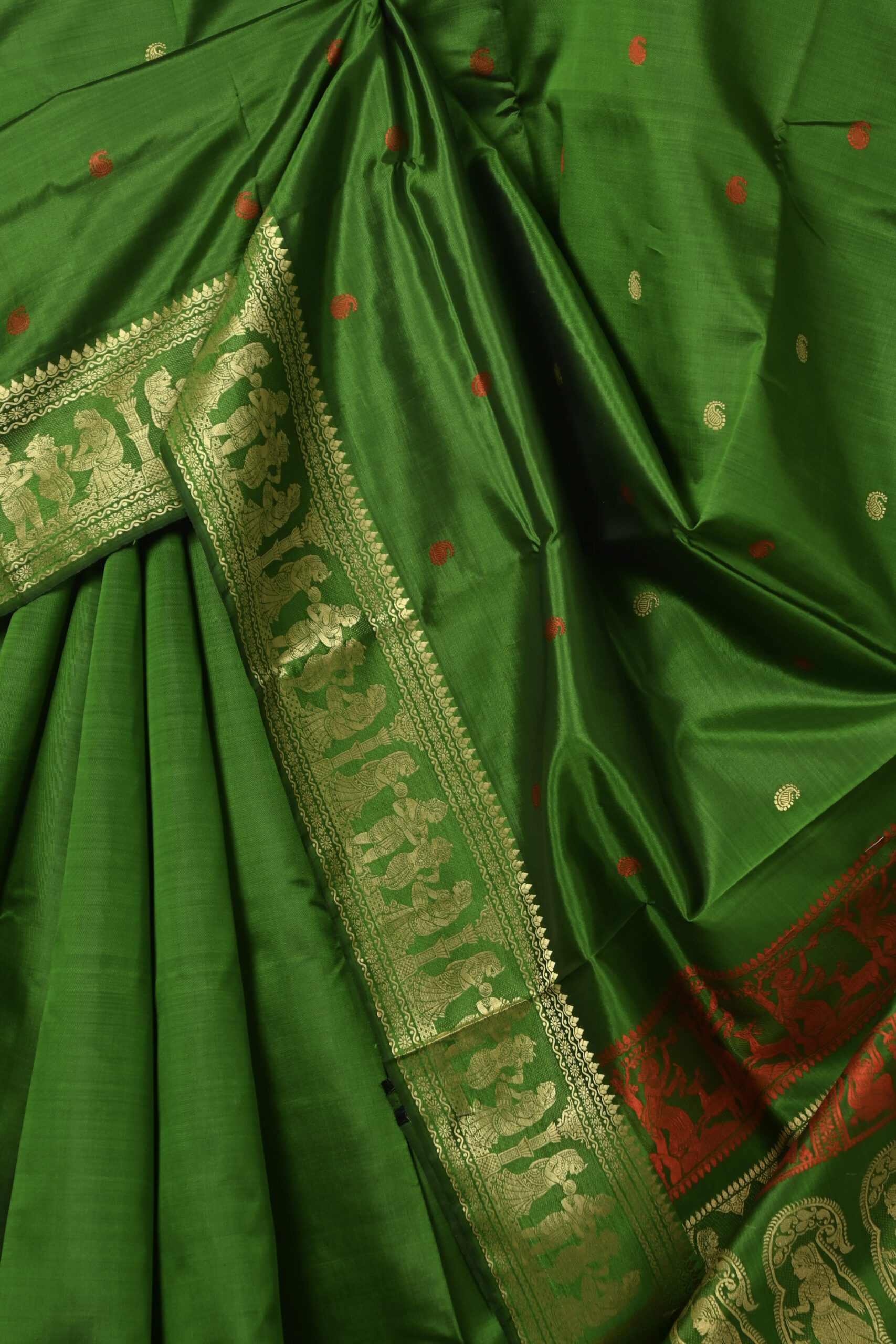 GREEN BALUCHARI SAREE WITH DUAL THREAD WORK AND BLOUSE PIECE