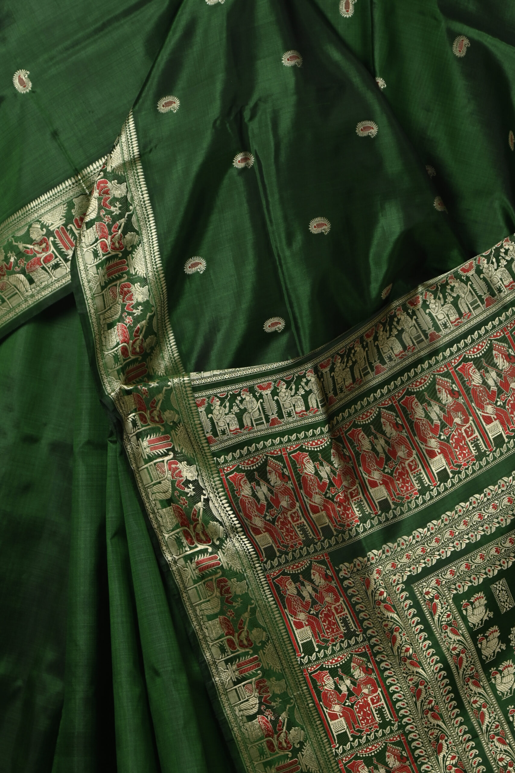 GREEN BALUCHARI SAREE WITH THREAD WORK AND BLOUSE PIECE