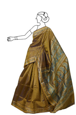 GREEN BALUCHARI SAREE WITH THREAD WORK AND BLOUSE PIECE