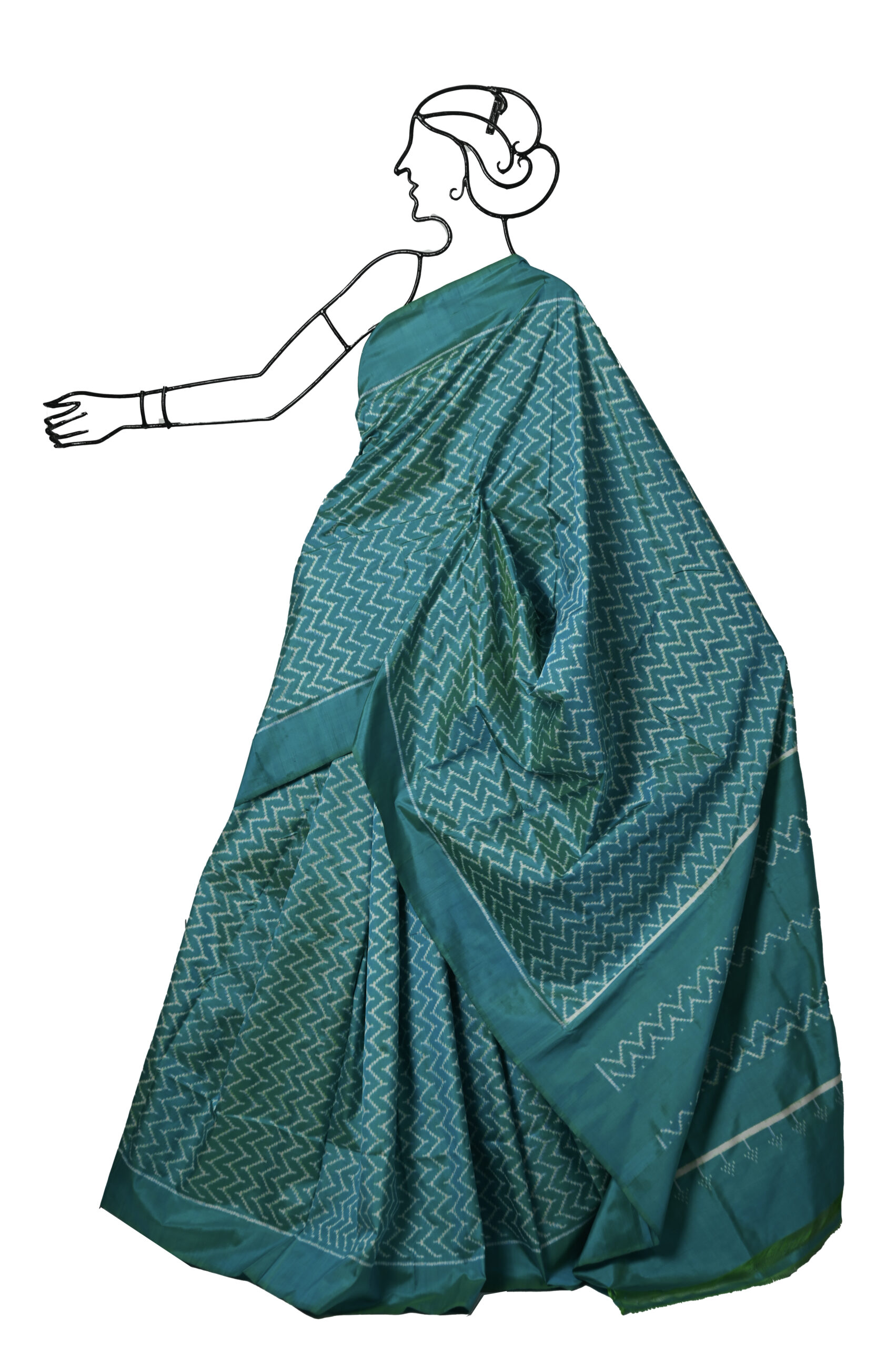 GREEN TELIA SILK SAREE WITH IKKAT WEAVE AND BLOUSE PIECE