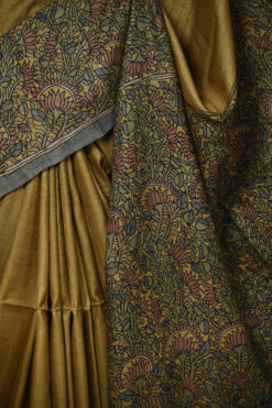 Be the first to review “GREEN TUSSAR SAREE WITH KALAMKARI BORDER AND PALLU WITH BLOUSE PIECE” Cancel reply