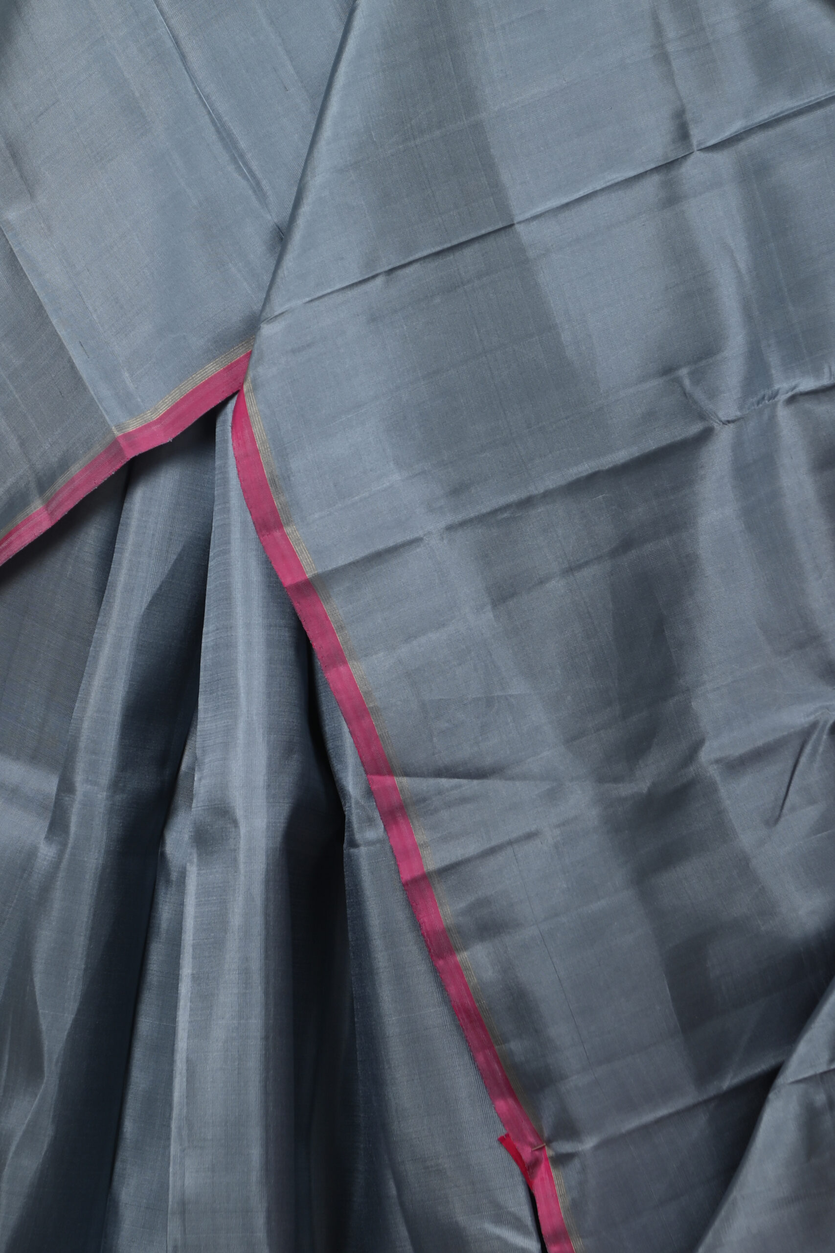 GREY KANJEEVARAM SAREE WITH PINK ZARI WORK PALLU AND BLOUSE PIECE