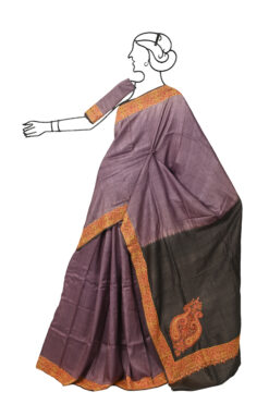Be the first to review “LAVENDER AND BROWN TUSSAR SAREE WITH KASHMIRI EMBROIDERED BORDER AND PALLU WITH BLOUSE PIECE” Cancel reply