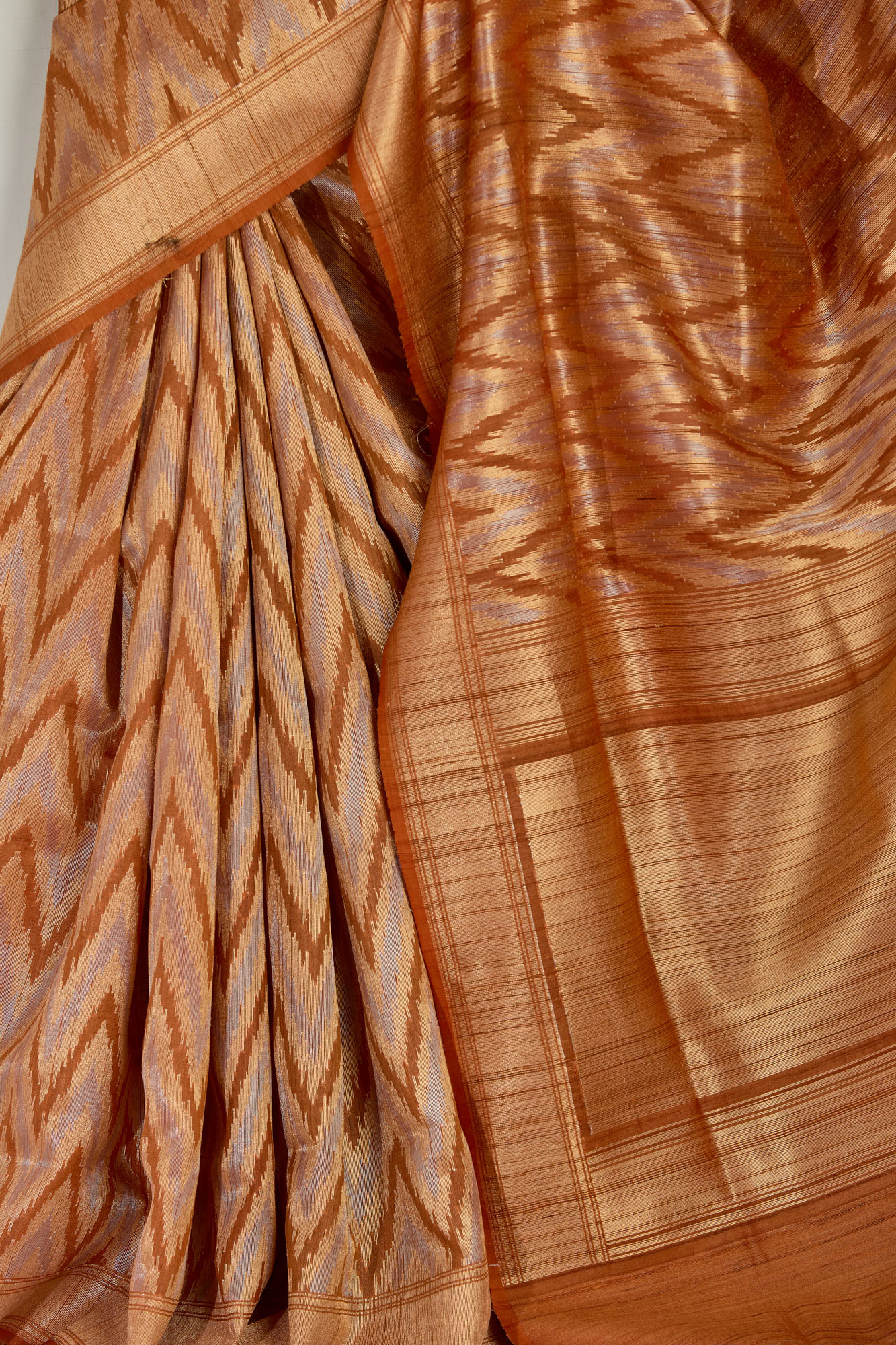 LIGHT ORANGE TUSSAR BENARASI SAREE WITH ALL OVER ZARI WEAVE AND BLOUSE PIECE