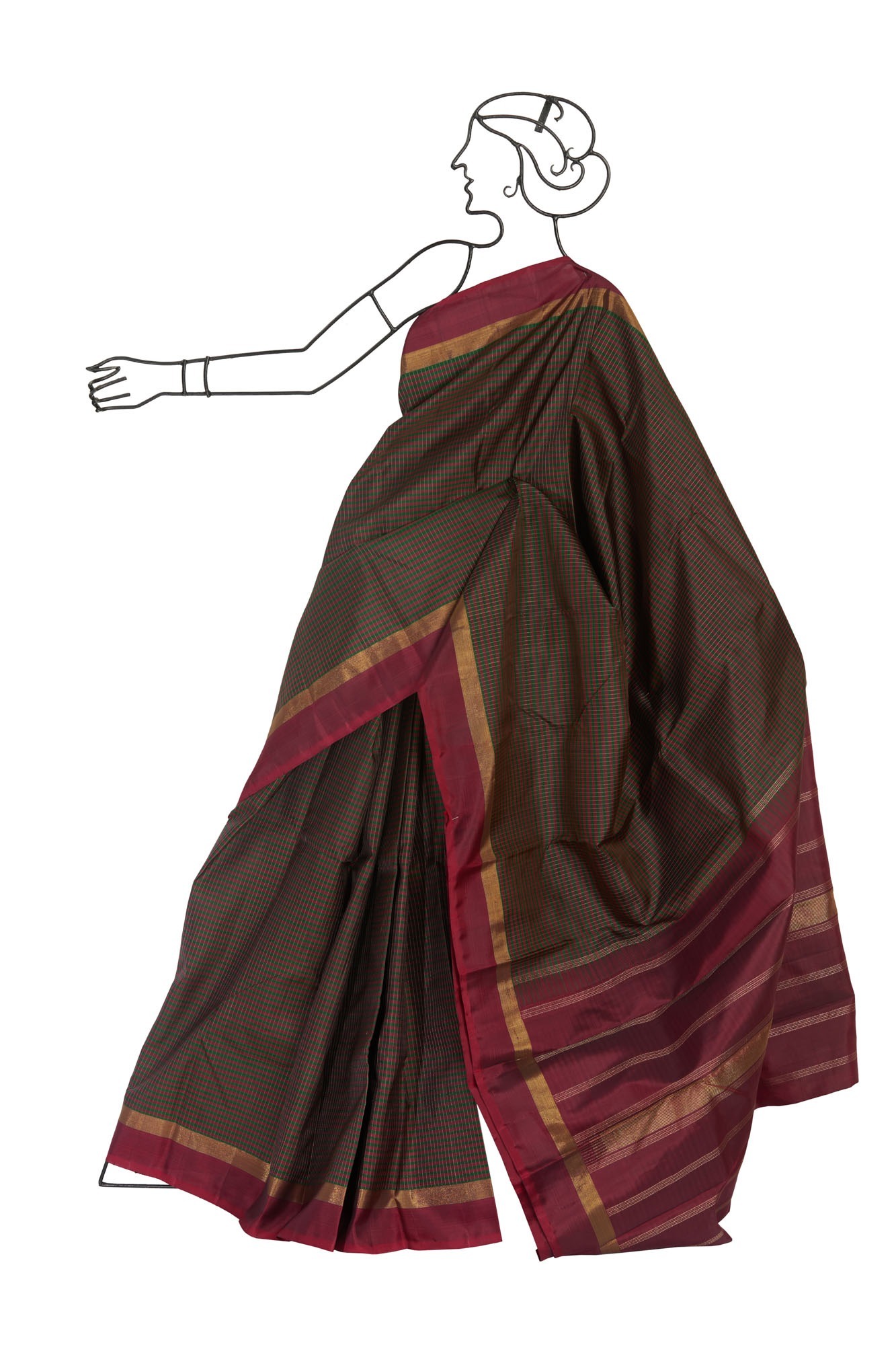 MAROON AND GREEN CHECKED KANJEEVARAM SAREE AND BLOUSE PIECE