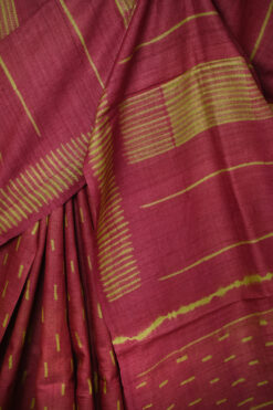 MAROON AND GREEN TUSSAR SHIBORI SAREE WITH BLOUSE PIECE