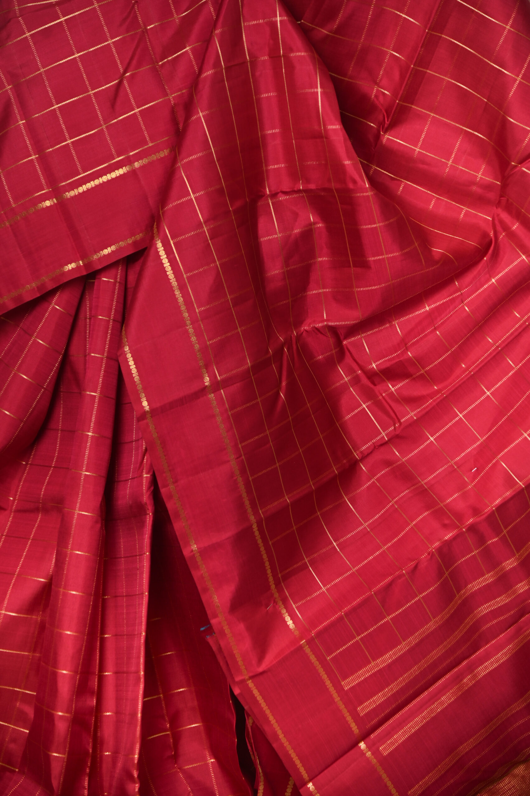 MAROON KANJEEVARAM SAREE WITH ZARI CHECKS AND BLOUSE PIECE
