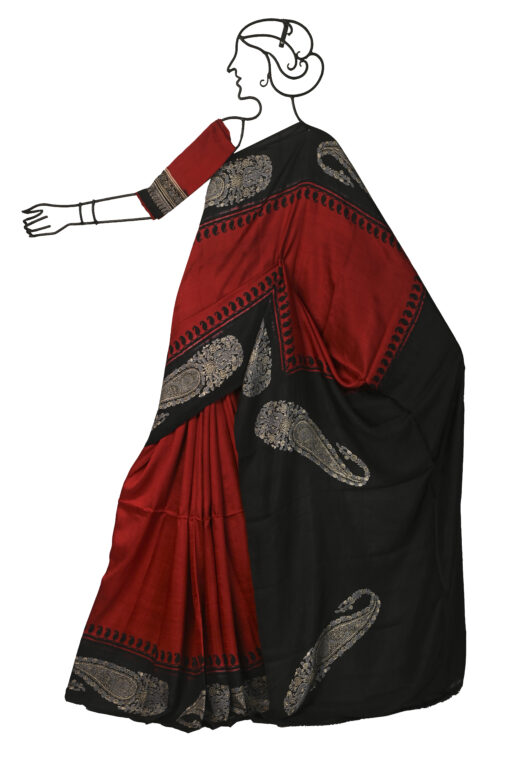 Be the first to review “MAROON PLAIN BODY WITH BLOCK PRINT BORDER AND PALLU AND WITH BLOUSE PIECE” Cancel reply