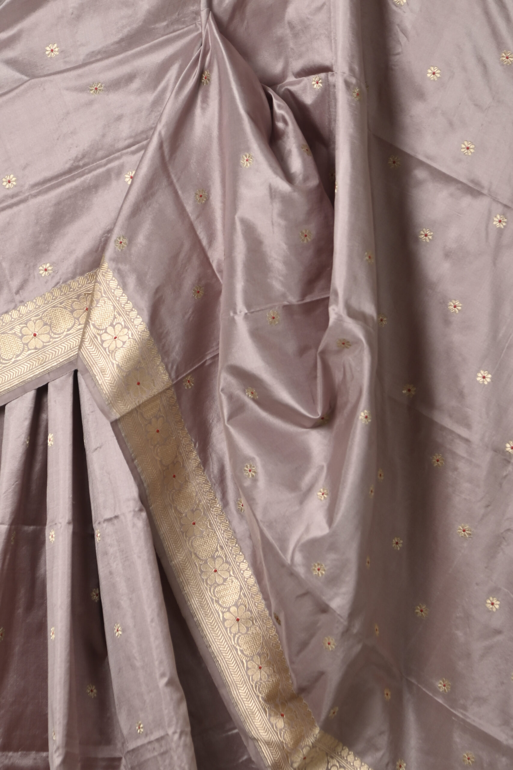 MAUVE KATAN BENARASI SAREE WITH ALL OVER ZARI BUTI AND BLOUSE PIECE