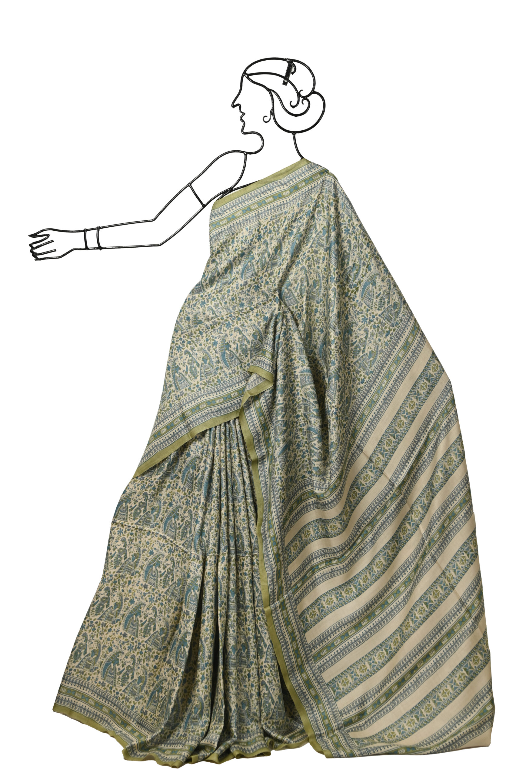 NATURAL BASE BHAGALPURI TUSSAR SAREE WITH FIGURE PRINT WITH BLOUSE PIECE