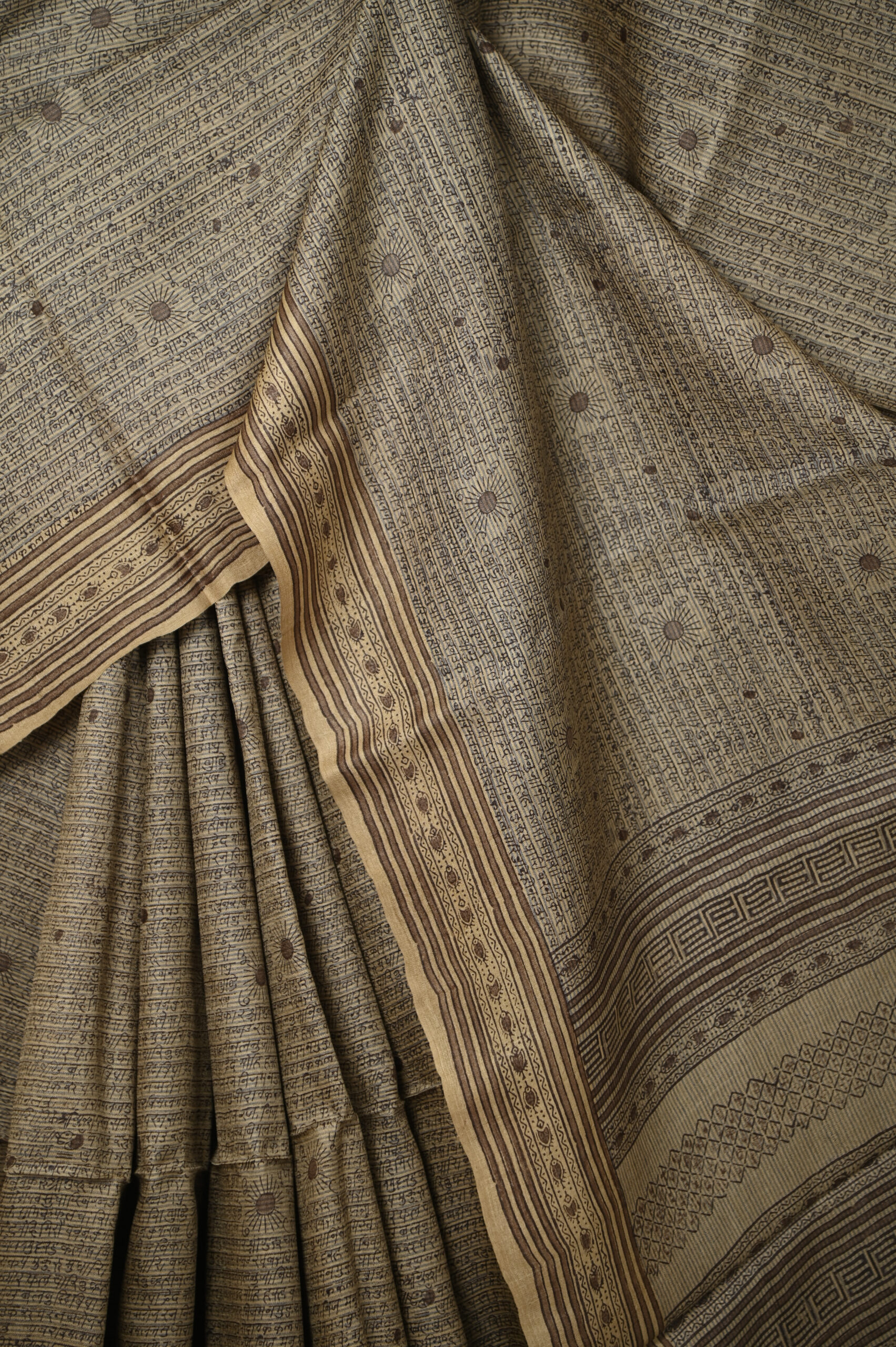 NATURAL BASE BHAGALPURI TUSSAR SAREE WITH SCRIPT PRINT WITH BLOUSE PIECE