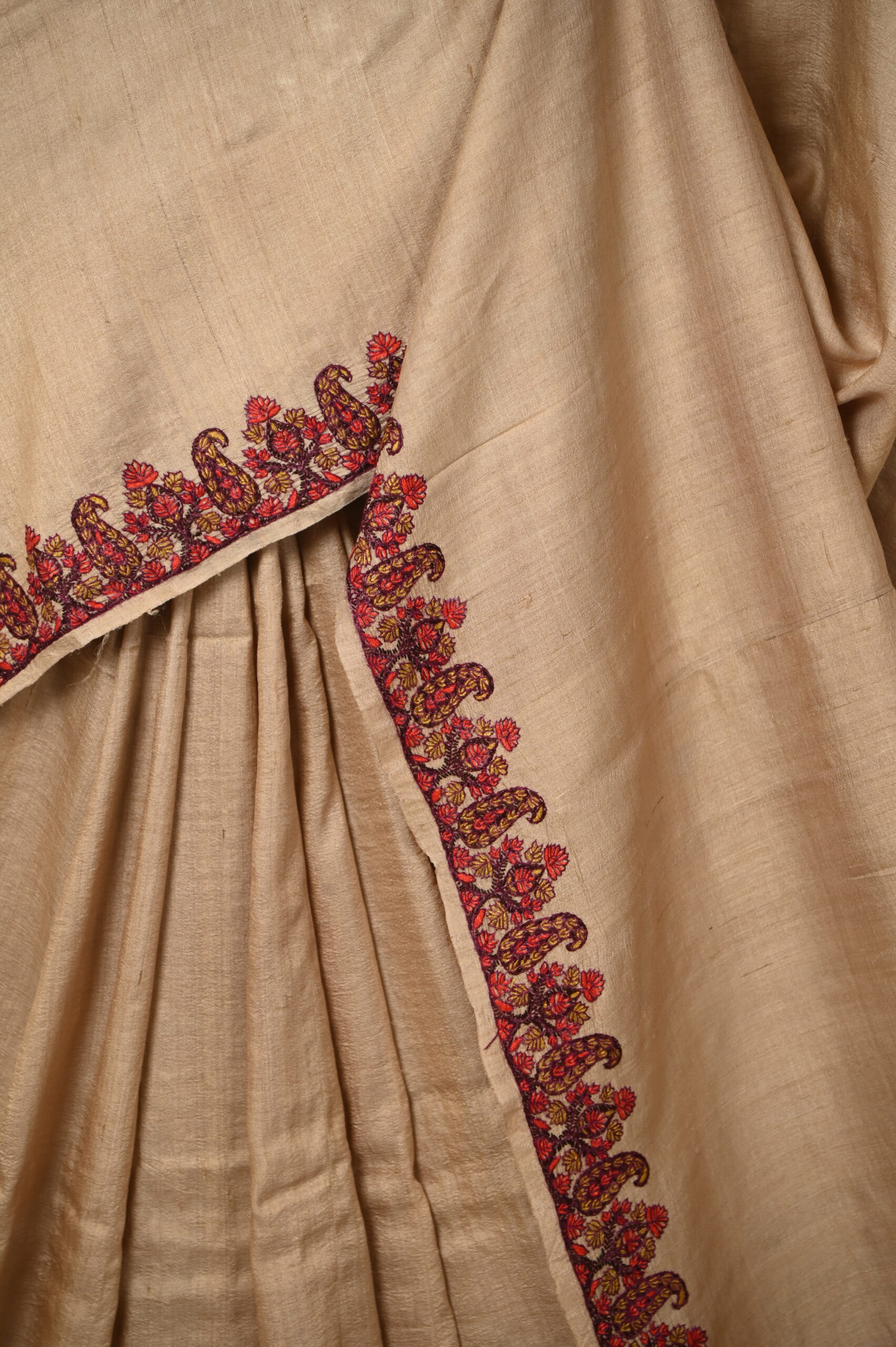 NATURAL BASE TUSSAR SAREE WITH KASHMIRI EMBORDER AND PALLU WITH BLOUSE PIECE