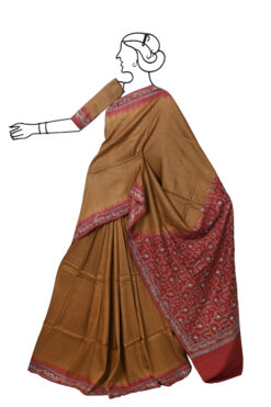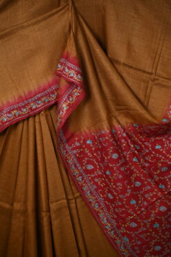 RED TUSSAR SAREE WITH KASHMIRI EMBROIDERED BORDER AND PALLU WITH BLOUSE PIECE