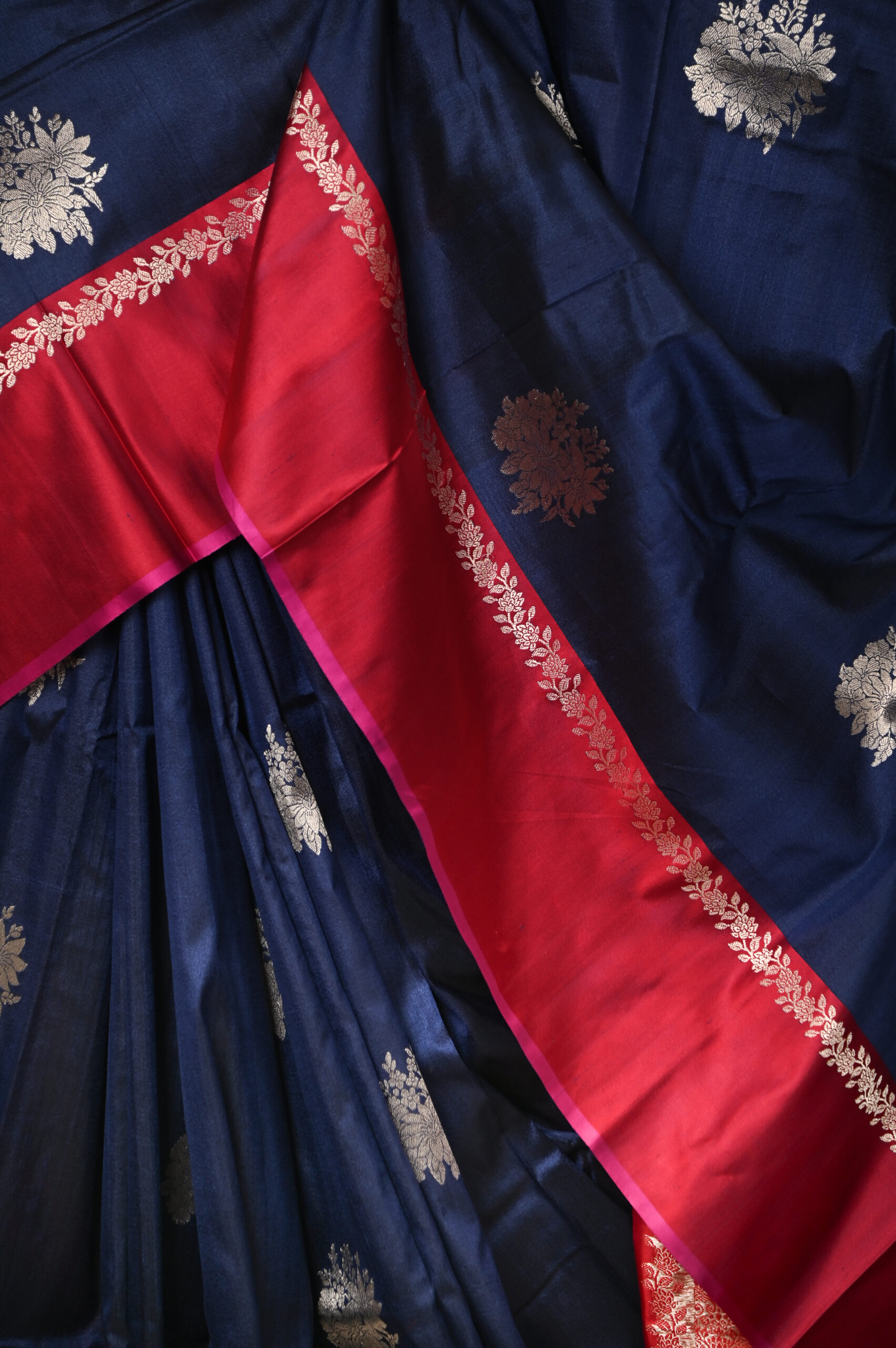 NAVY BLUE TUSSAR BENARASI SAREE WITH ZARI BUTA WITH BLOUSE PIECE