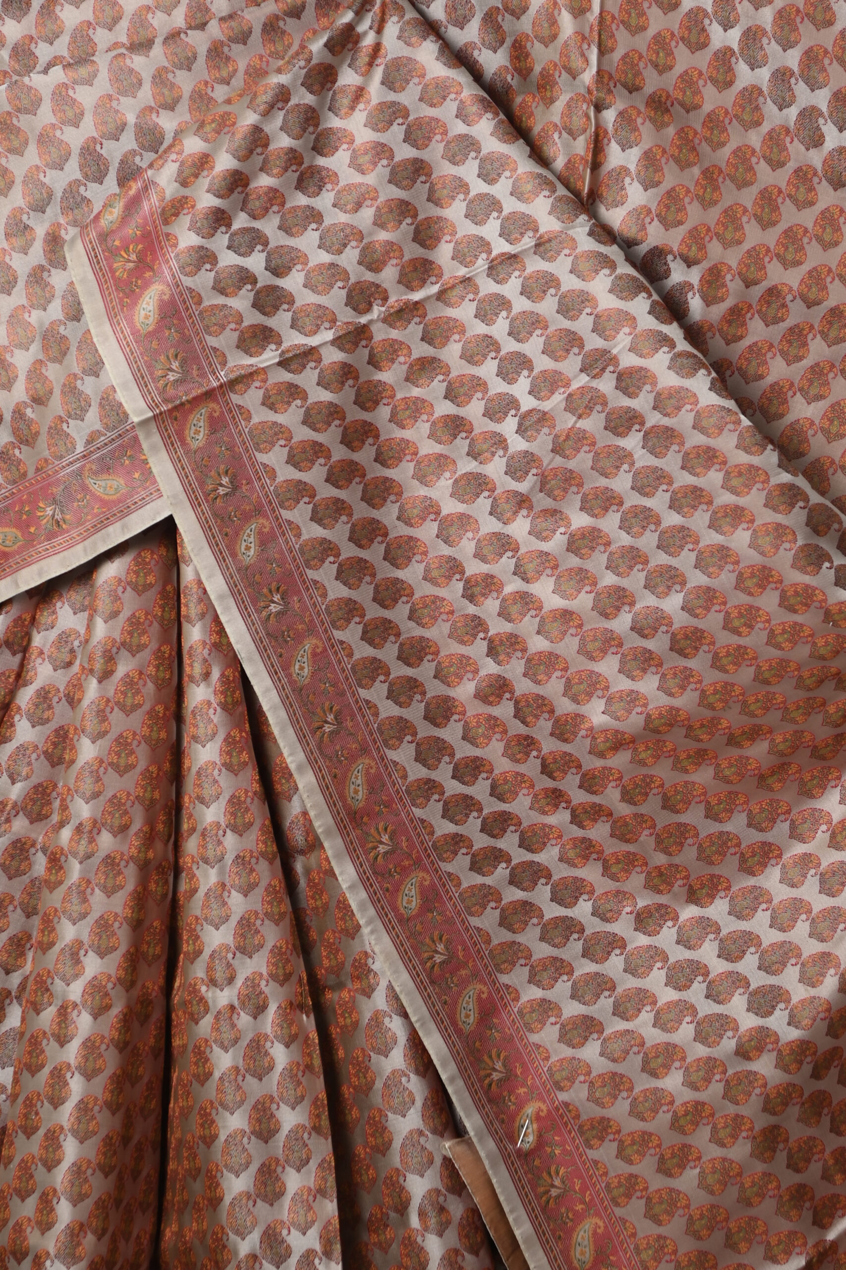 OFF WHITE DUAL TONE KATAN BENARASI SAREE WITH JAMAWAR DESIGN AND BLOUSE PIECE