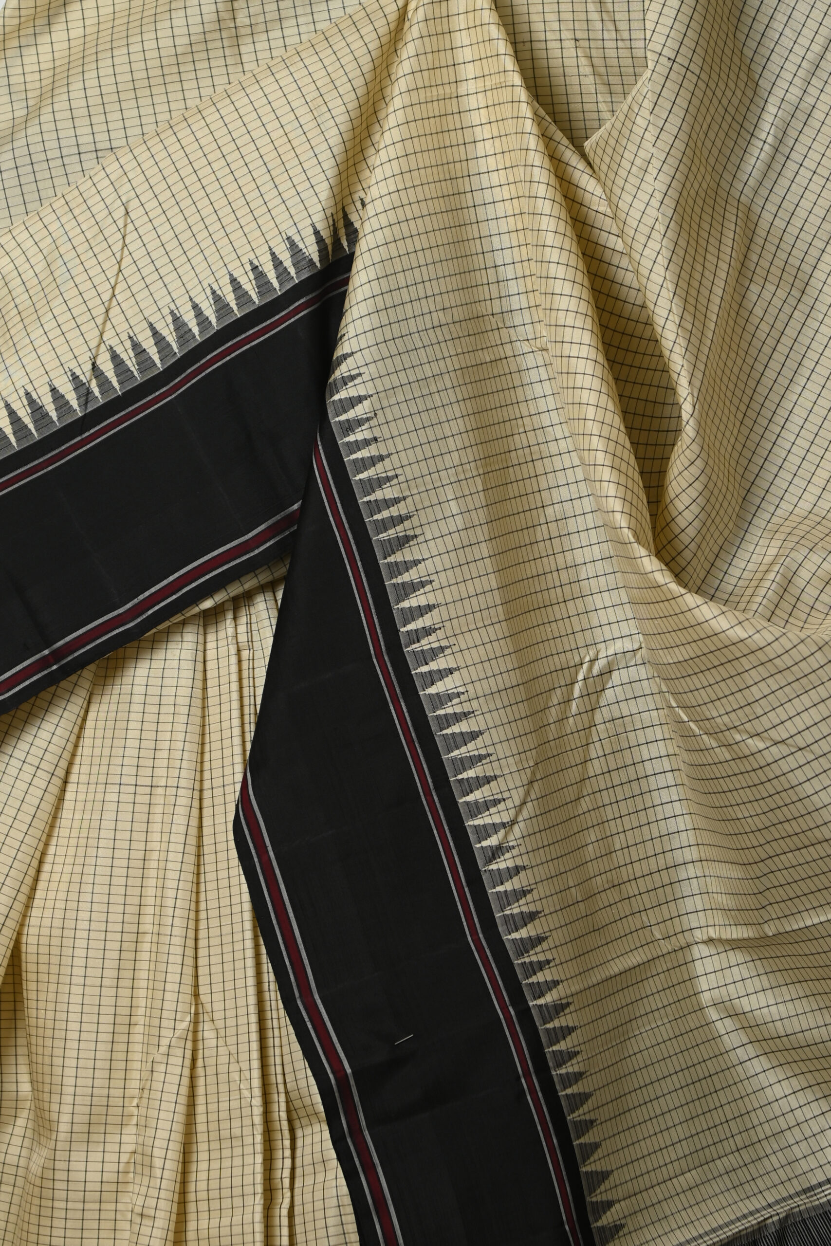 OFF WHITE KANJEEVARAM SAREE WITH BLACK CHECKS AND PALLU AND BLOUSE PIECE