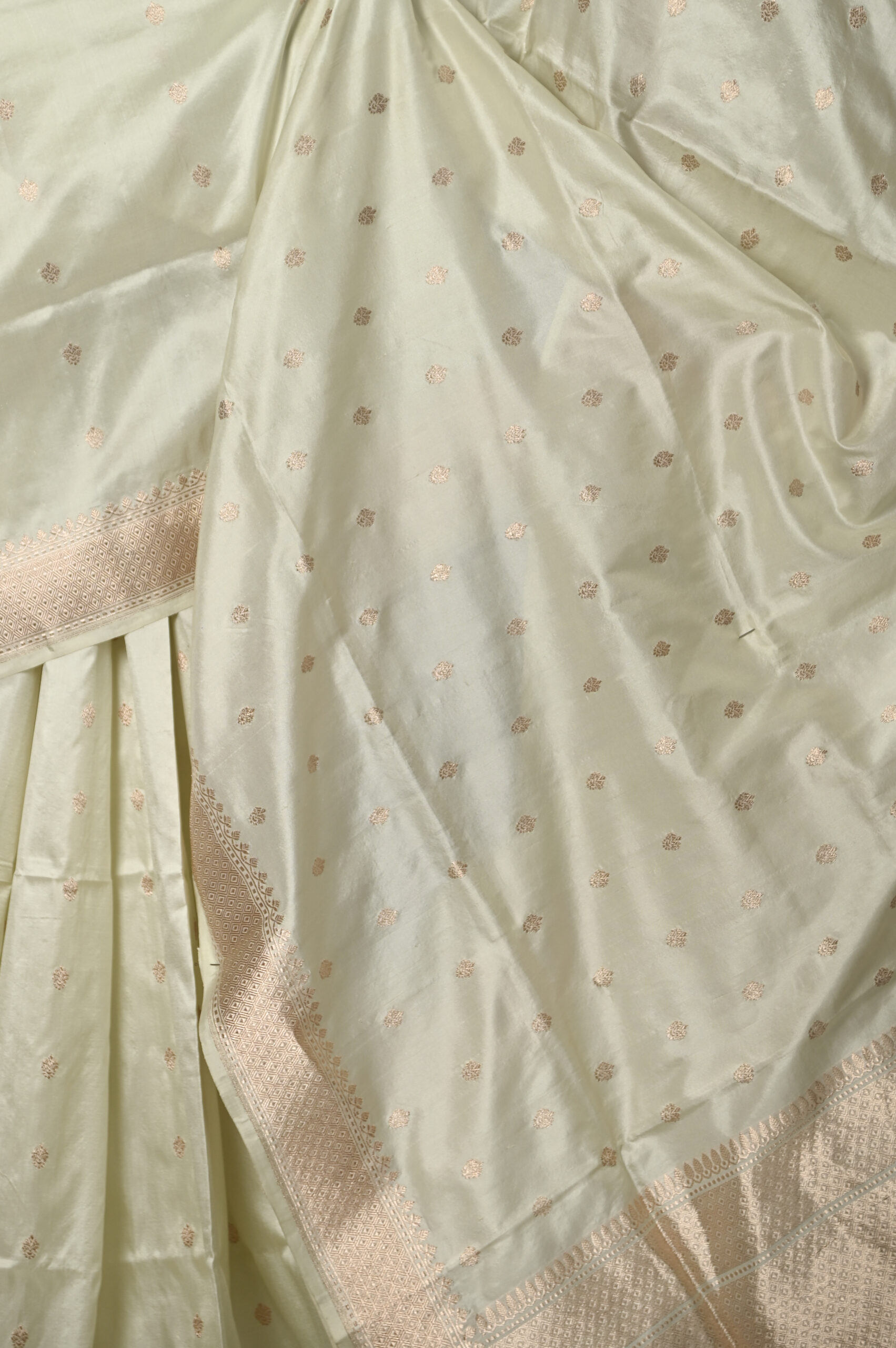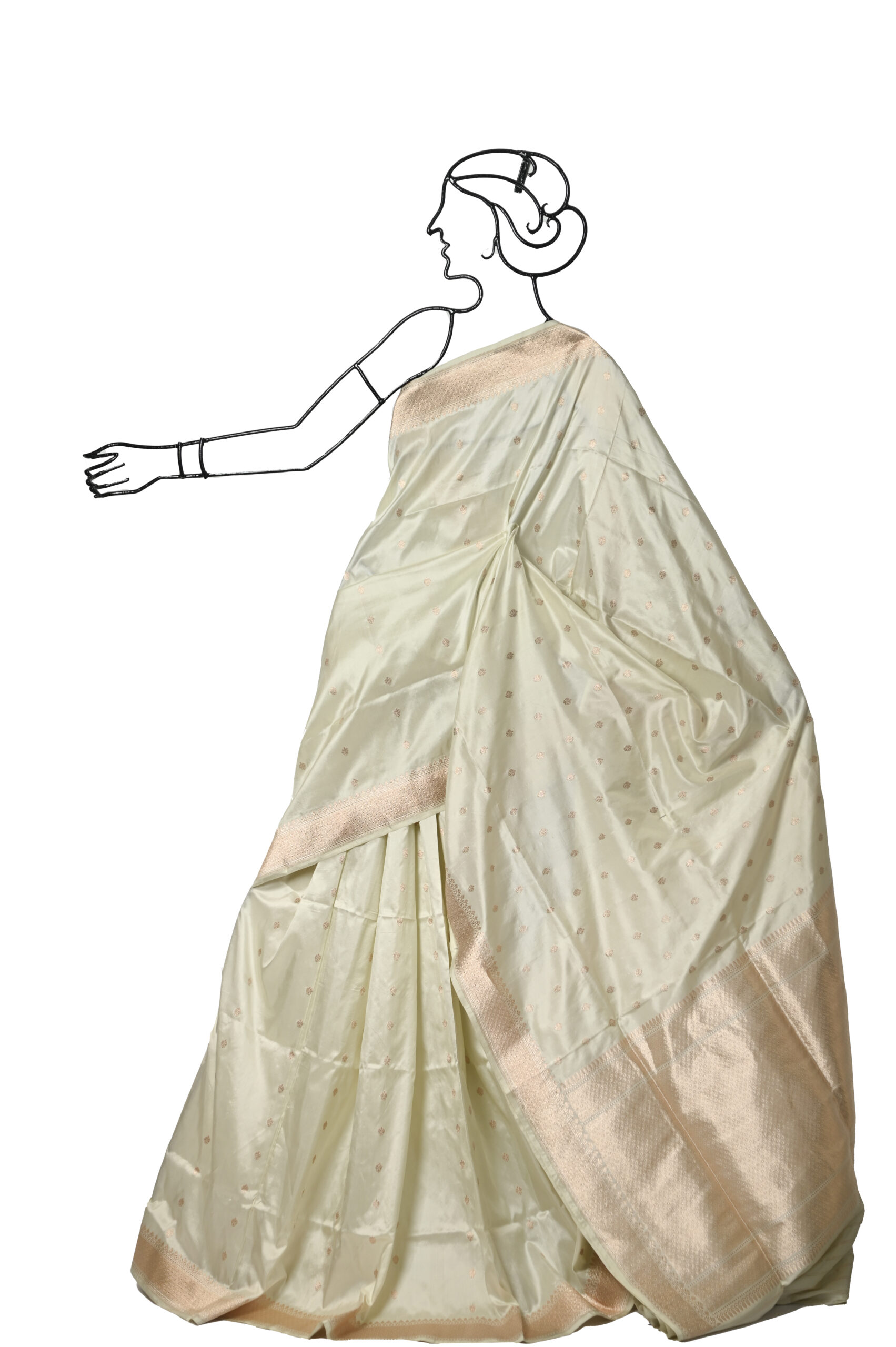 OFF WHITE KATAN BENARASI SAREE WITH ALL OVER ZARI BUTI AND BLOUSE PIECE