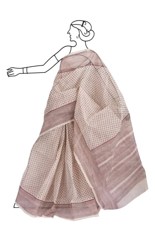OFFWHITE WITH BROWN BLOCK PRINTED TANT SAREE