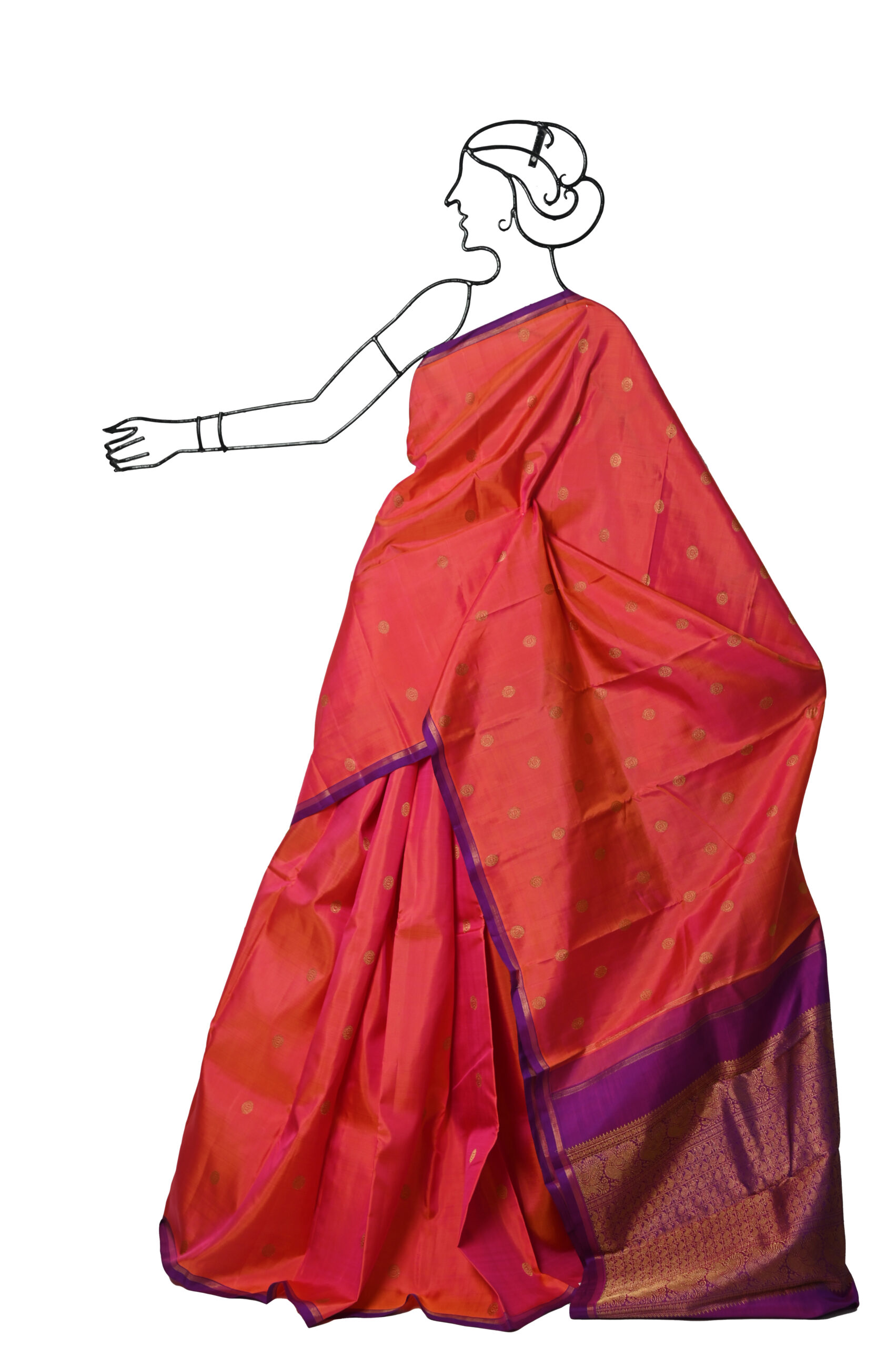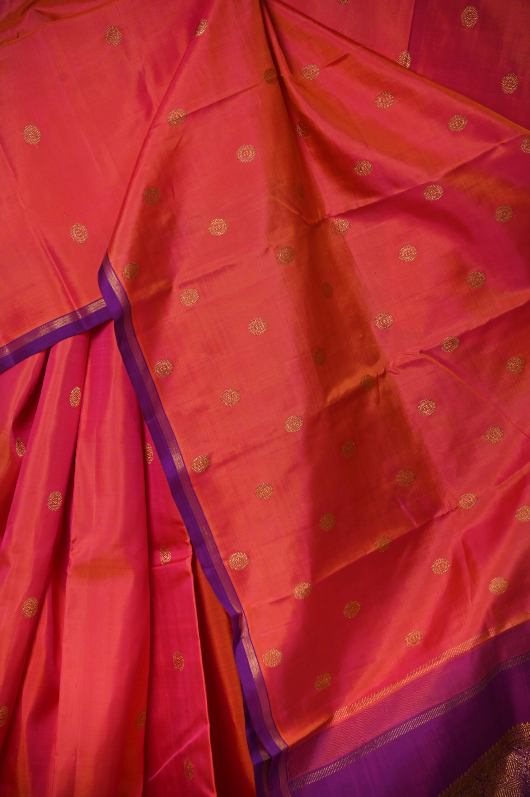 ORANGE DUAL TONE KANJEEVARAM SAREE WITH ZARI BUTI AND PURPLE PALLU AND BLOUSE PIECE